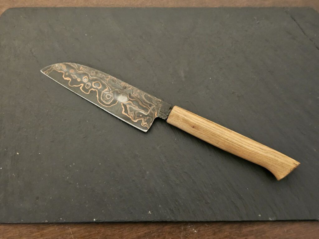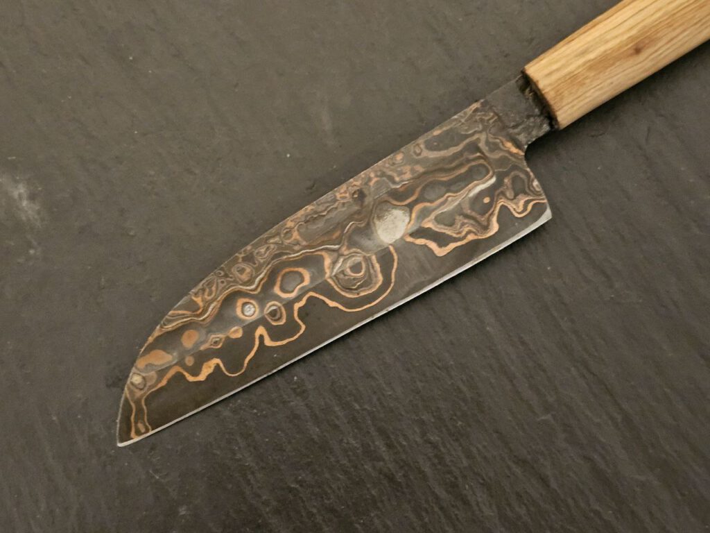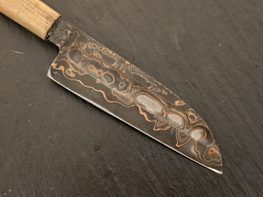 Cladding: Copper damascus – 8 layers copper, 9 layers steel