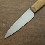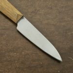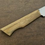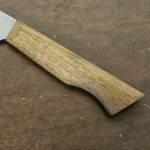 The handle is shaped in my signature hybrid style – blending European ergonomics with Japanese elegance – to sit naturally and comfortably in the hand. Made from teak wood, it offers not only a warm and refined look but also natural resistance to moisture and wear thanks to its high oil content. Traditionally used in shipbuilding and fine furniture, teak ensures long-lasting comfort and durability in the kitchen.