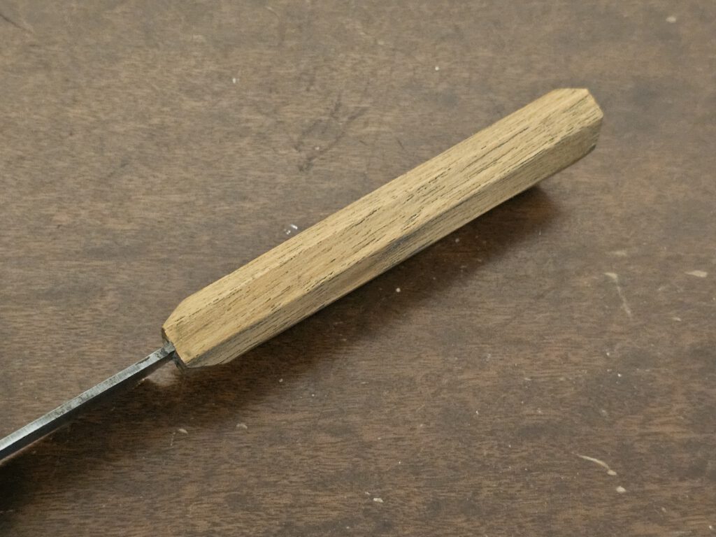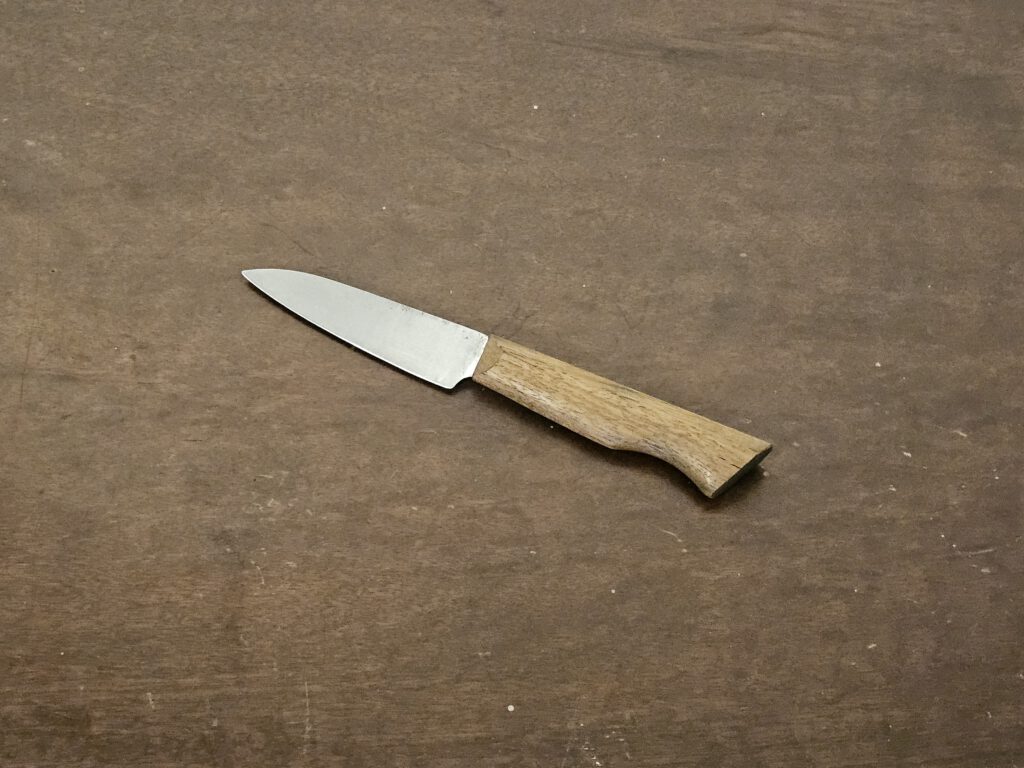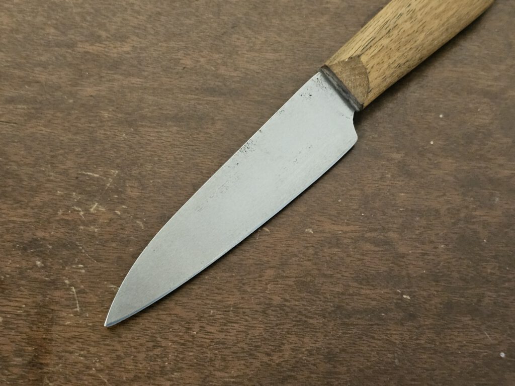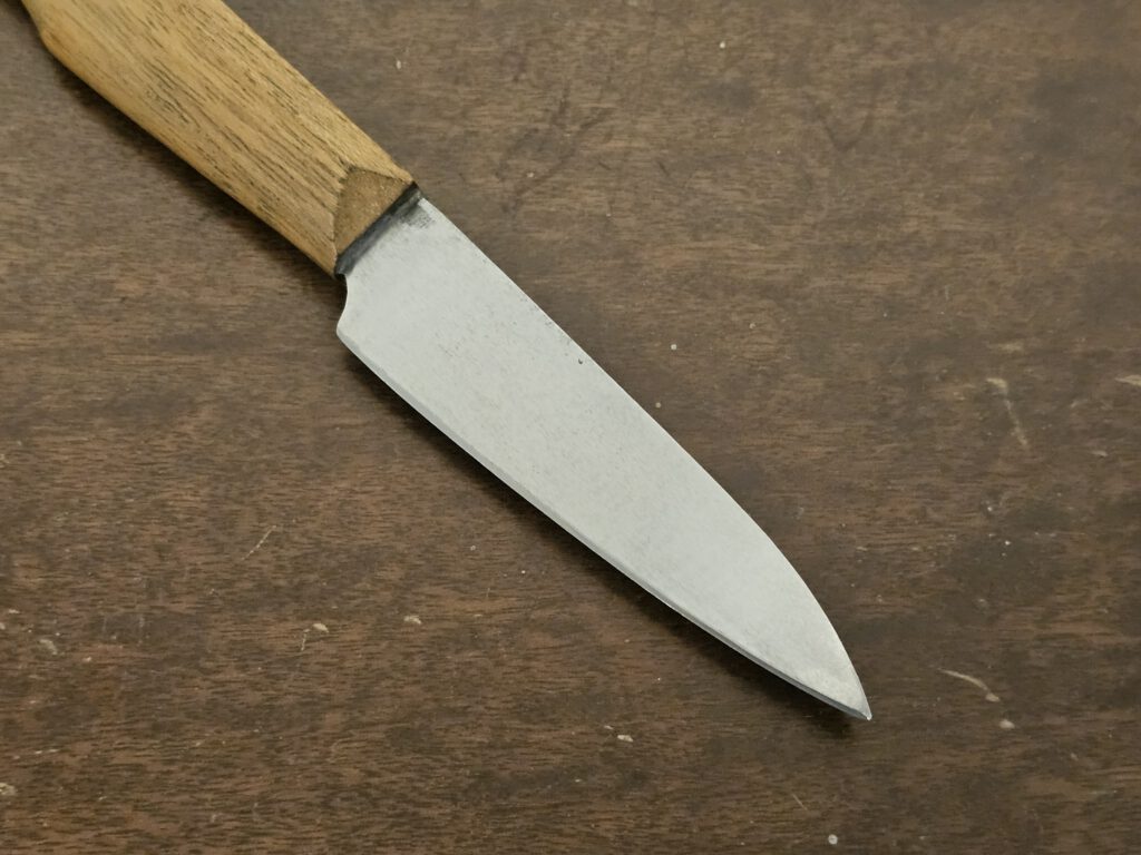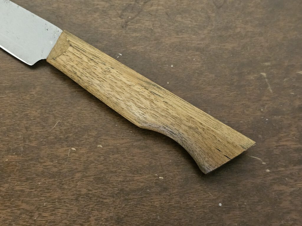 This office knife is crafted for versatility and precision. The blade is forged from recycled steel once used in an old circular saw, giving it excellent sharpness, durability, and a Rockwell hardness of around 59–61 HRC. Tough, reliable, and made to last.