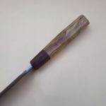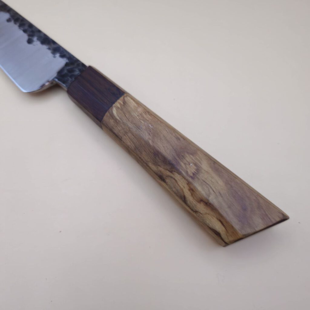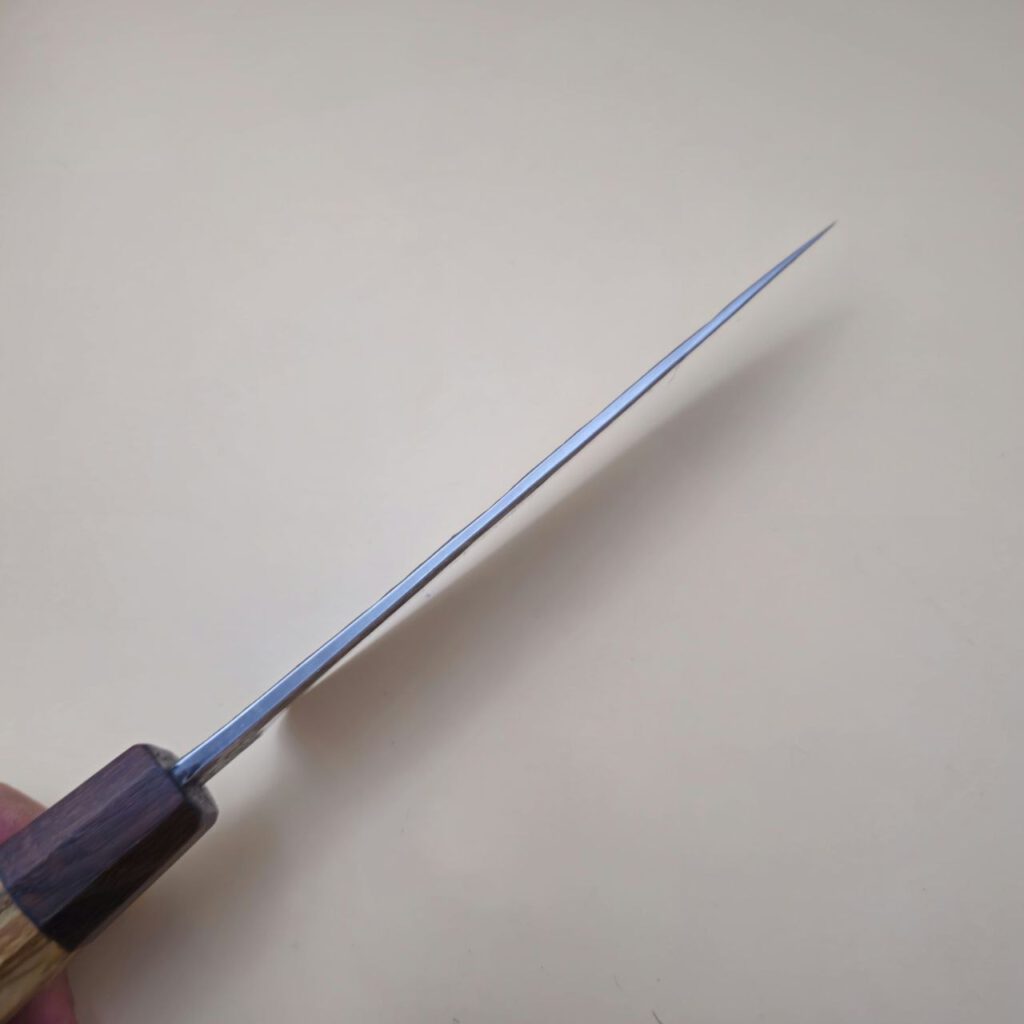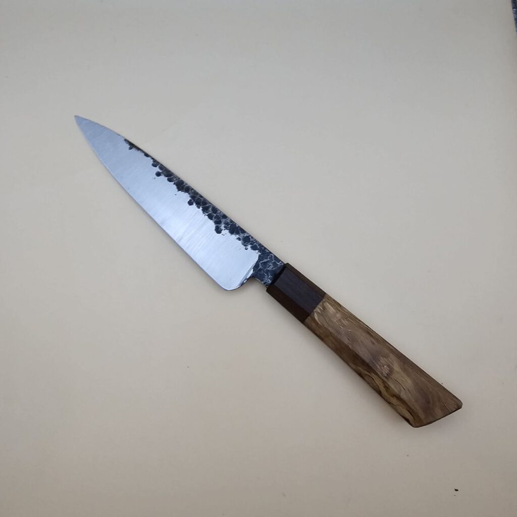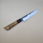This Petty knife is forged from a pneumatic hammer chisel, a tool steel originally designed to withstand heavy impact. Reforged into a kitchen blade, it offers durability and reliable cutting performance for daily food preparation.