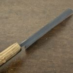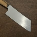 This Nakiri Vegetable Knife is a precise and versatile tool. Its extremely thin 2 mm carbon steel blade glides effortlessly through vegetables of all kinds, and is strong enough to handle meat as well. The steel is hardened to 59–60 HRC, making it sharp, easy to maintain, and slightly more resistant to rust than typical carbon steel.