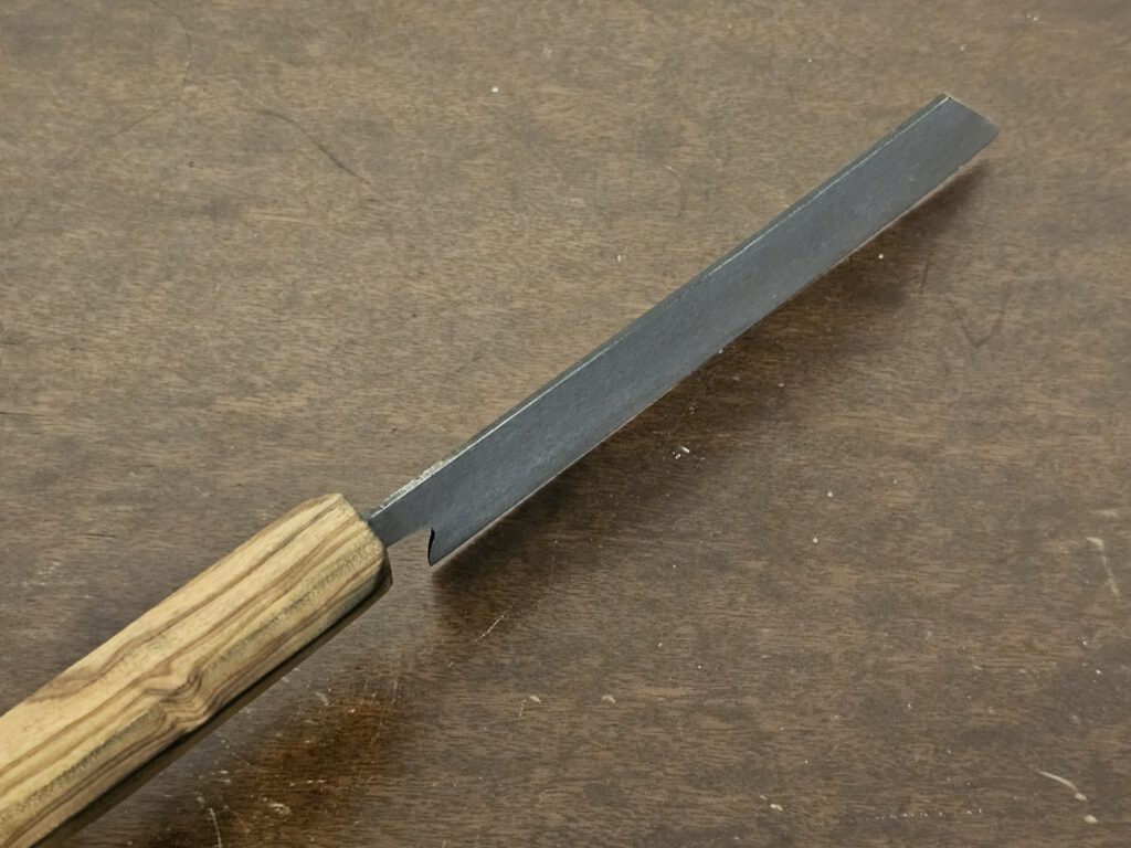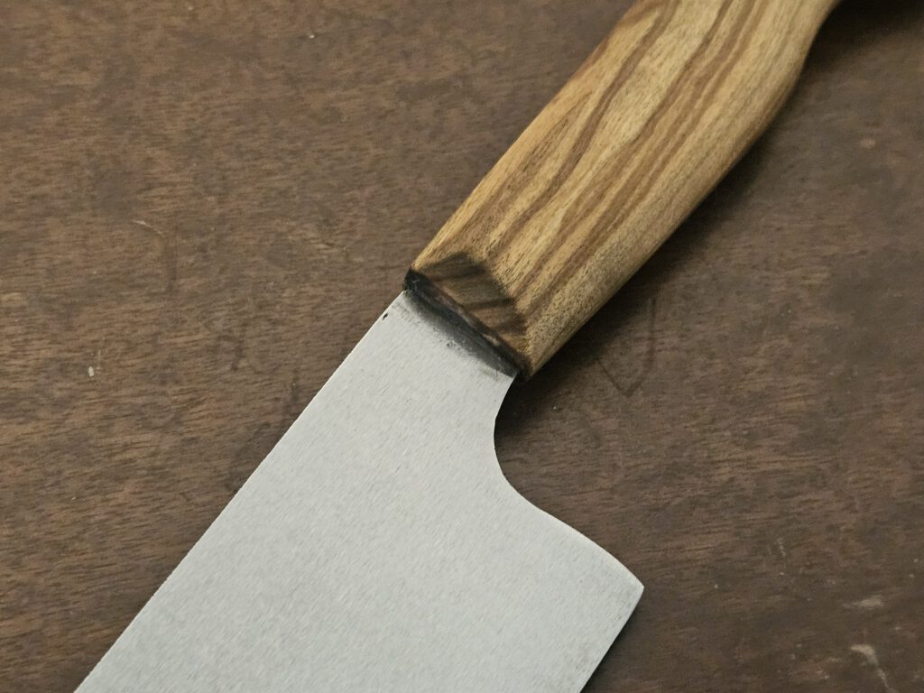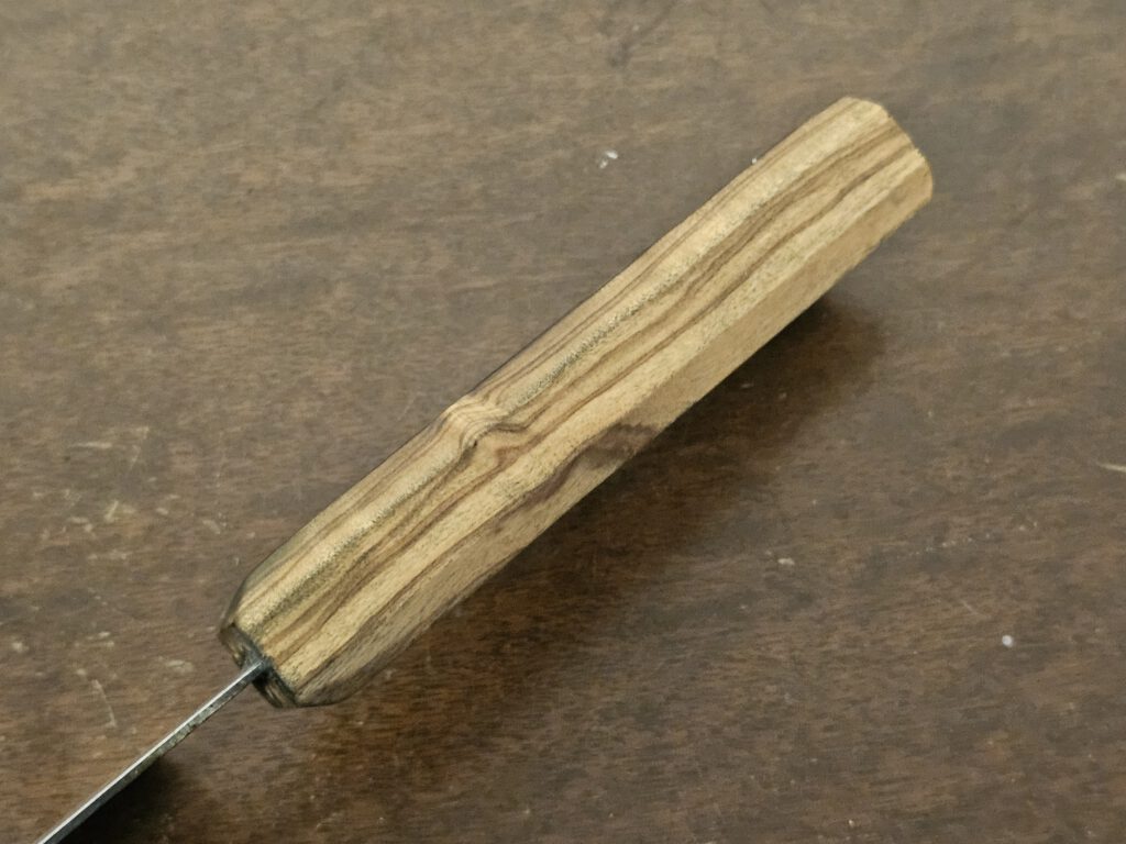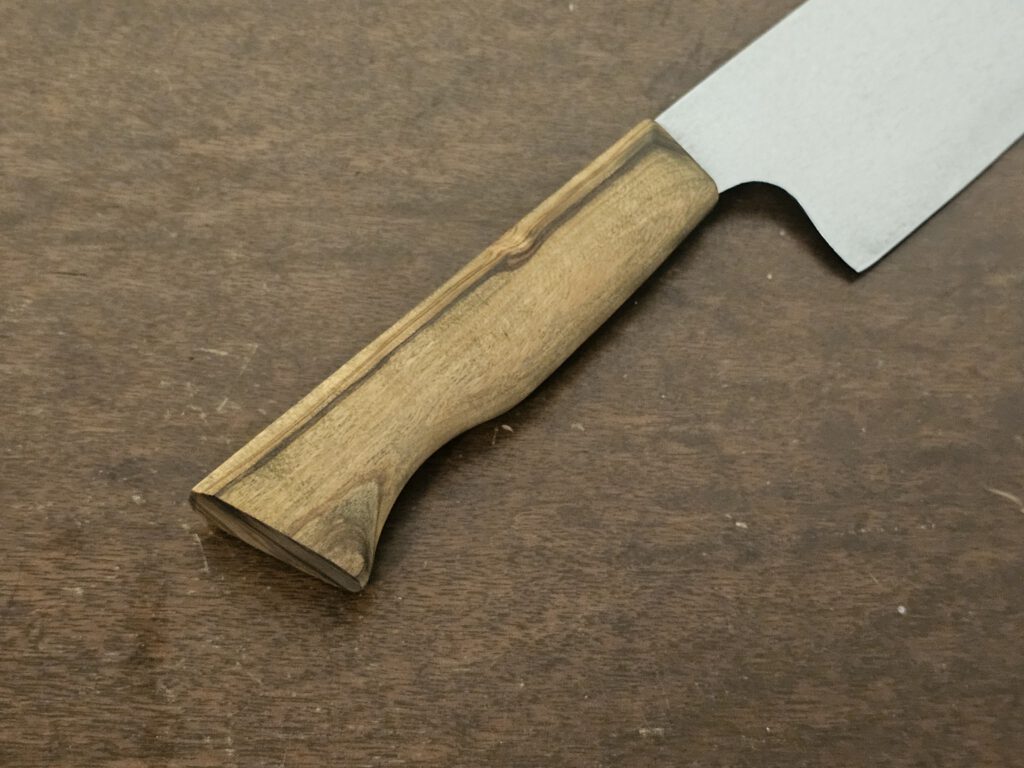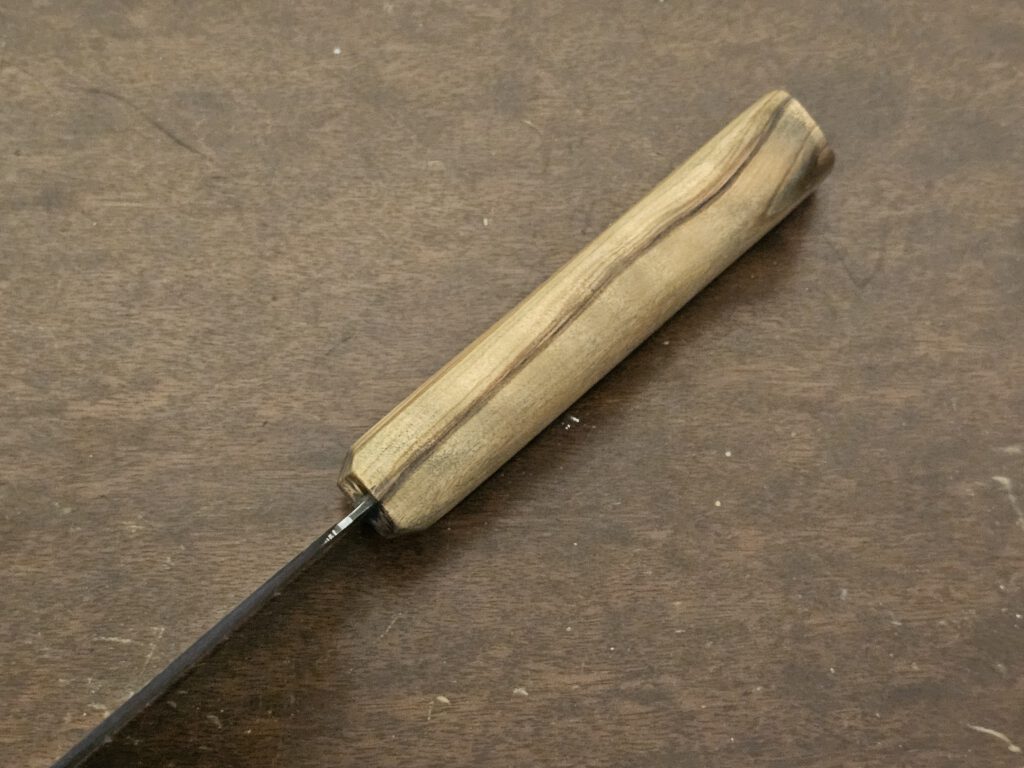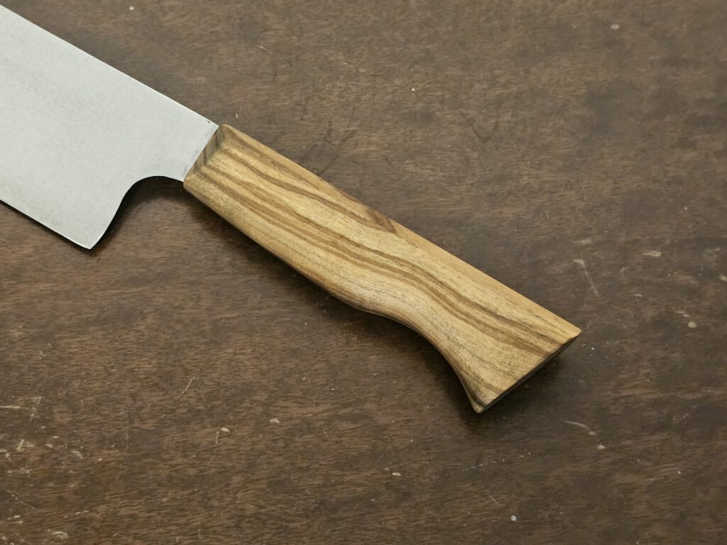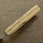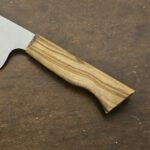 The handle is made from beautifully grained Umbrian olive wood, shaped in my signature ergonomic form, combining European comfort with subtle Japanese elegance. Olive wood is prized for its durability, warm feel, and natural patterns, giving the knife a unique character that grows more beautiful with use.