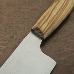 Always wash by hand with mild soap and water and dry immediately. Avoid the dishwasher, as heat and detergents can damage both steel and wood. Occasionally apply a light coat of food-safe oil to maintain both the carbon steel blade and the olive wood handle. With proper care, this Nakiri will remain a reliable and beautiful companion for years to come.